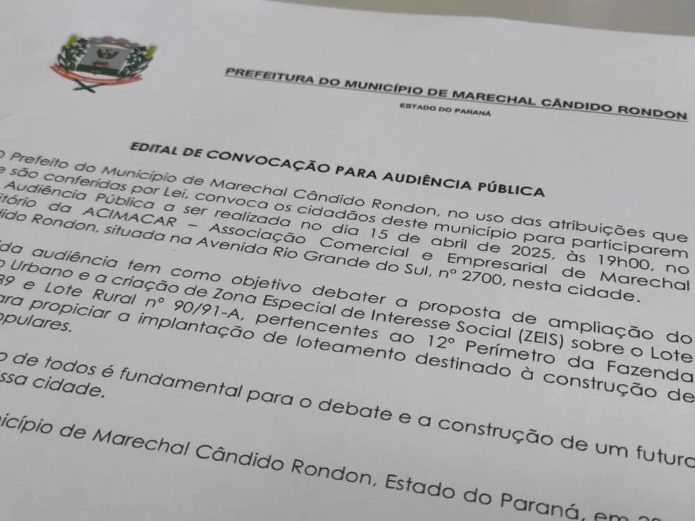 Audiência pública discutirá ampliação do perímetro urbano para moradias populares em Marechal Rondon