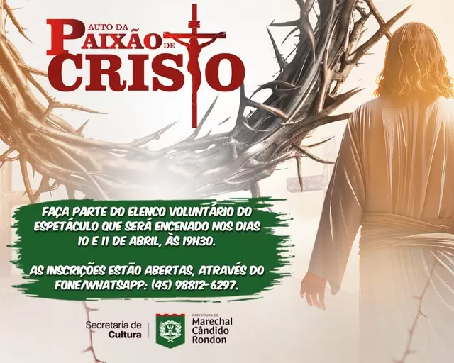 Espetáculo gratuito acontece nesta quinta e sexta-feira em Marechal Rondon e promete envolver o público com cenografia grandiosa, artistas locais e momentos de reflexão