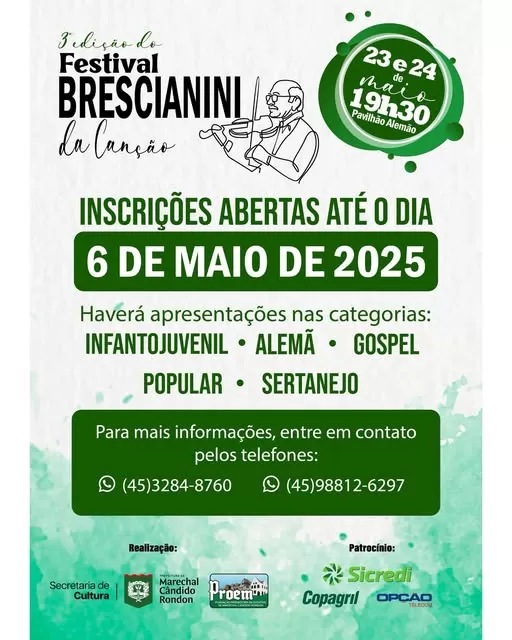 Inscrições abertas para o 3º Festival Brescianini da Canção