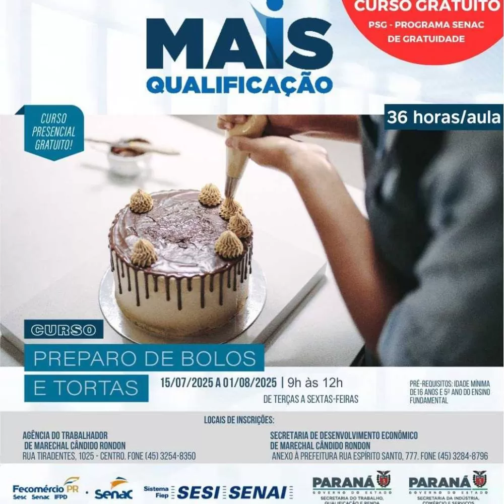 Prefeitura e Senac oferecem cursos gratuitos de culinária em Marechal Cândido Rondon