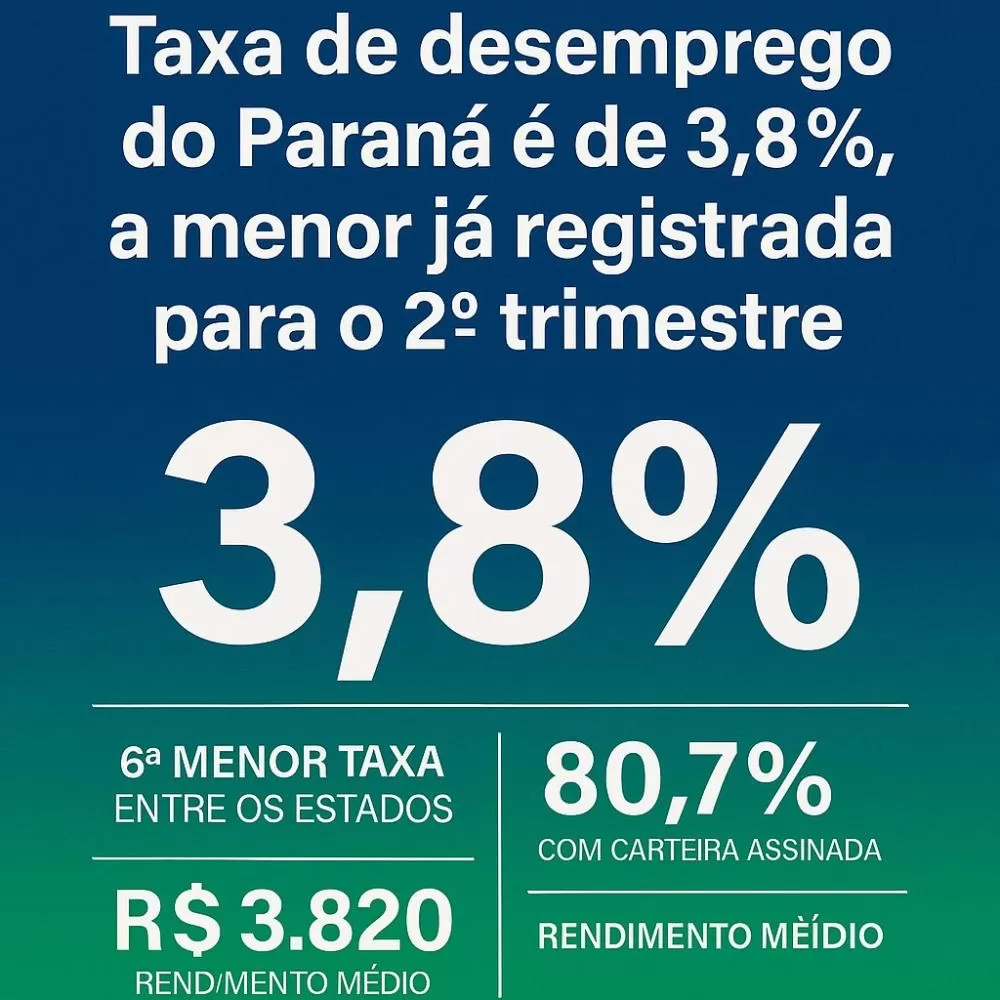 Paraná registra taxa de desemprego de 3,8%, a menor da história para o segundo trimestre