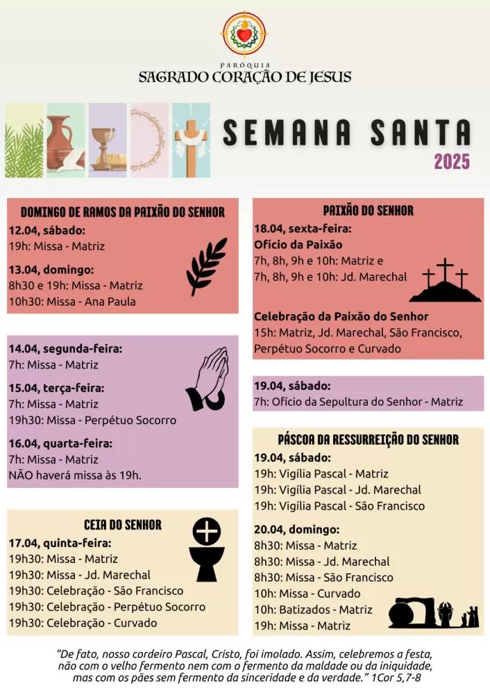 Paróquia Sagrado Coração de Jesus, em Marechal Rondon, divulga programação que une tradição, reflexão e esperança, culminando na ressurreição de Cristo