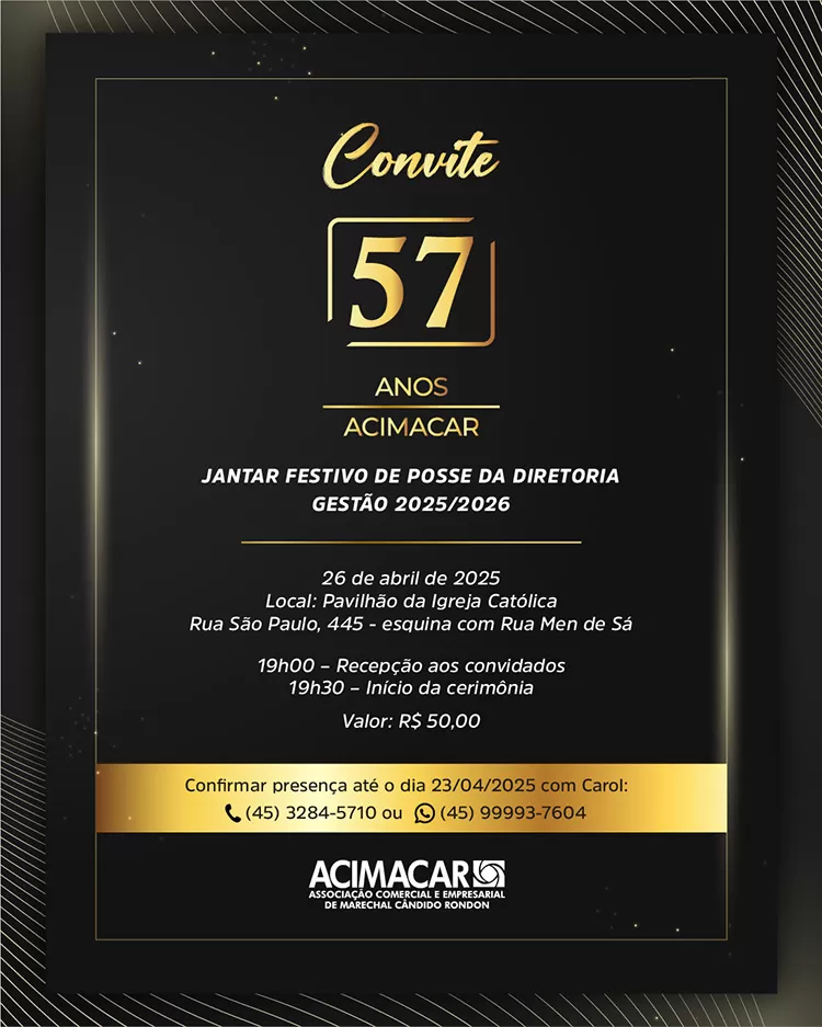 Nova diretoria da Acimacar toma posse em noite de celebração aos 57 anos da entidade