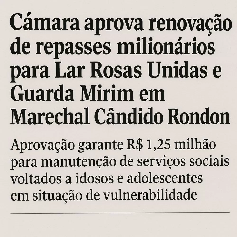 Câmara autoriza renovação de repasses para Lar Rosas Unidas e Guarda Mirim em Marechal Rondon