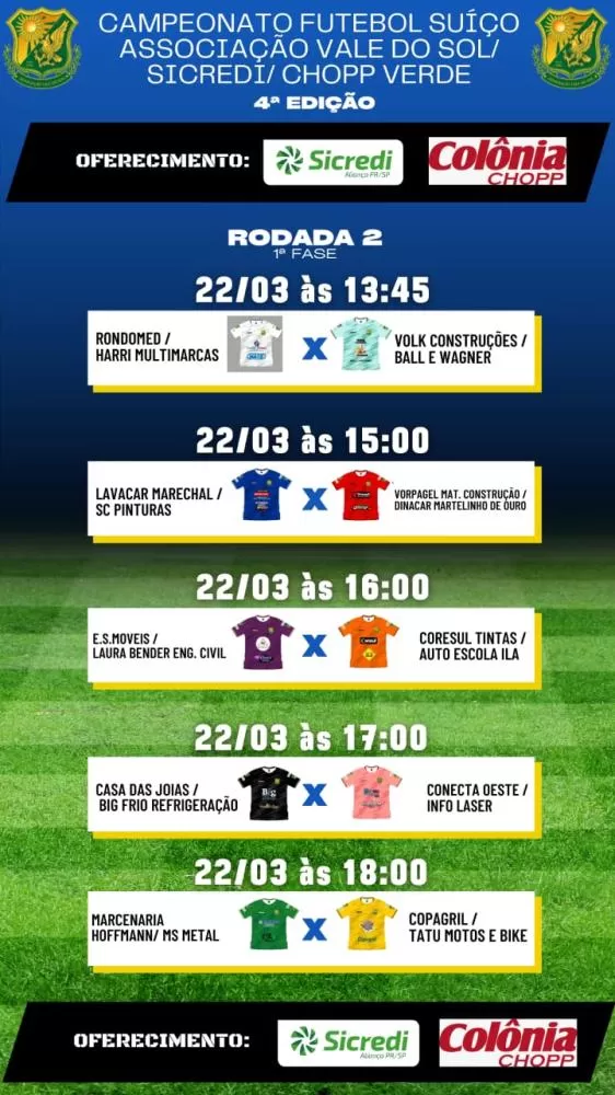 2° Rodada do Campeonato Vale do Sol/Sicredi/Choop Do Verde aconteceu no sabado dia 22 de março