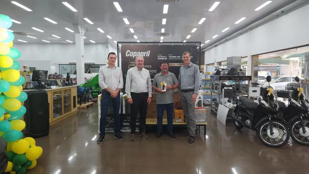 A Copagril realizou na tarde de quinta-feira (21) a entrega oficial dos primeiros prêmios da campanha “Copagril 55 anos, 55 prêmios”, iniciativa que celebra mais de cinco décadas de história da cooperativa. O evento aconteceu na Loja Agropecuária Copagril, em Marechal Cândido Rondon, e contou com a presença da diretoria, associados, clientes contemplados e convidados.