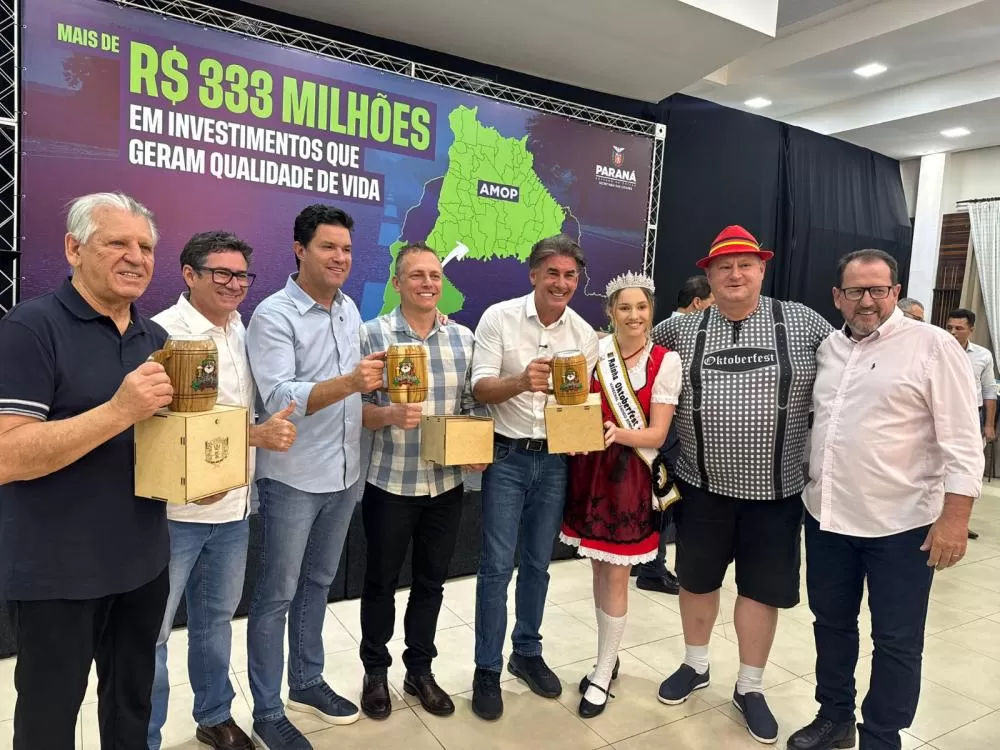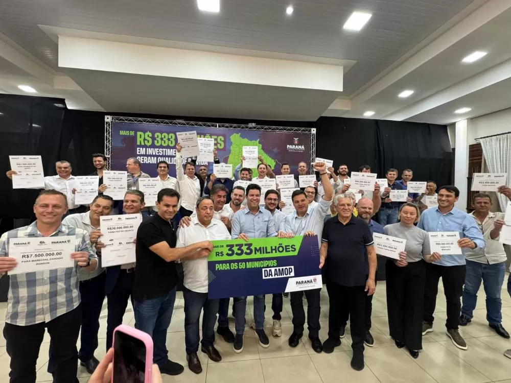 O governo do Paraná anunciou nesta sexta-feira (17) um novo pacote de investimentos para os municípios da região Oeste. Durante cerimônia realizada na sede da Primato Cooperativa Agroindustrial, em Toledo, o secretário de Estado das Cidades, Guto Silva, confirmou a liberação de mais de R$ 333 milhões em recursos destinados aos municípios que integram a Associação dos Municípios do Oeste do Paraná (AMOP).