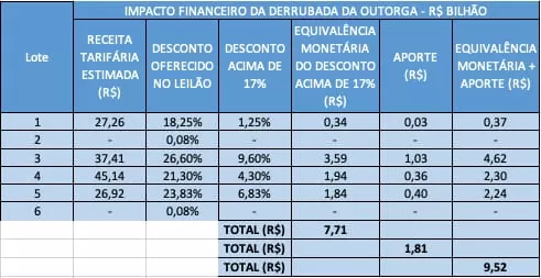 Confira na tabela abaixo os cálculos sobre os ganhos obtidos com alterações no modelo de concessão: