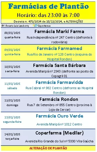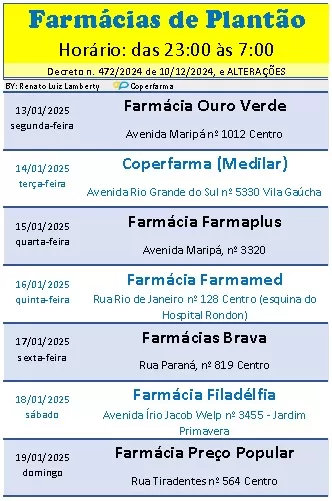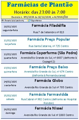 Plantão de Farmácias em Marechal Cândido Rondon: 20 a 26 de Janeiro de 2025