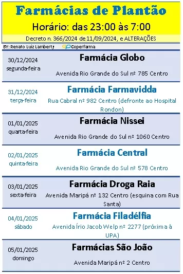 Plantão noturno em farmácias de Marechal Cândido Rondon: saiba onde encontrar atendimento de 30 de dezembro a 4 de janeiro
