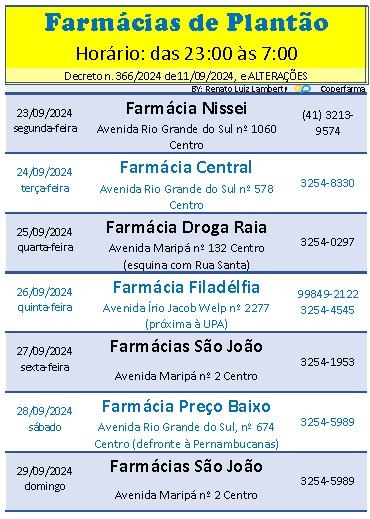 Plantão das farmácias de Marechal Cândido Rondon