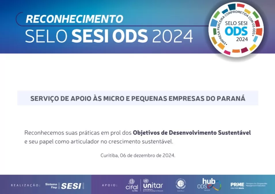 Sebrae/PR é reconhecido com o Selo Sesi ODS 202 por impulsionar o turismo sustentável e governança local